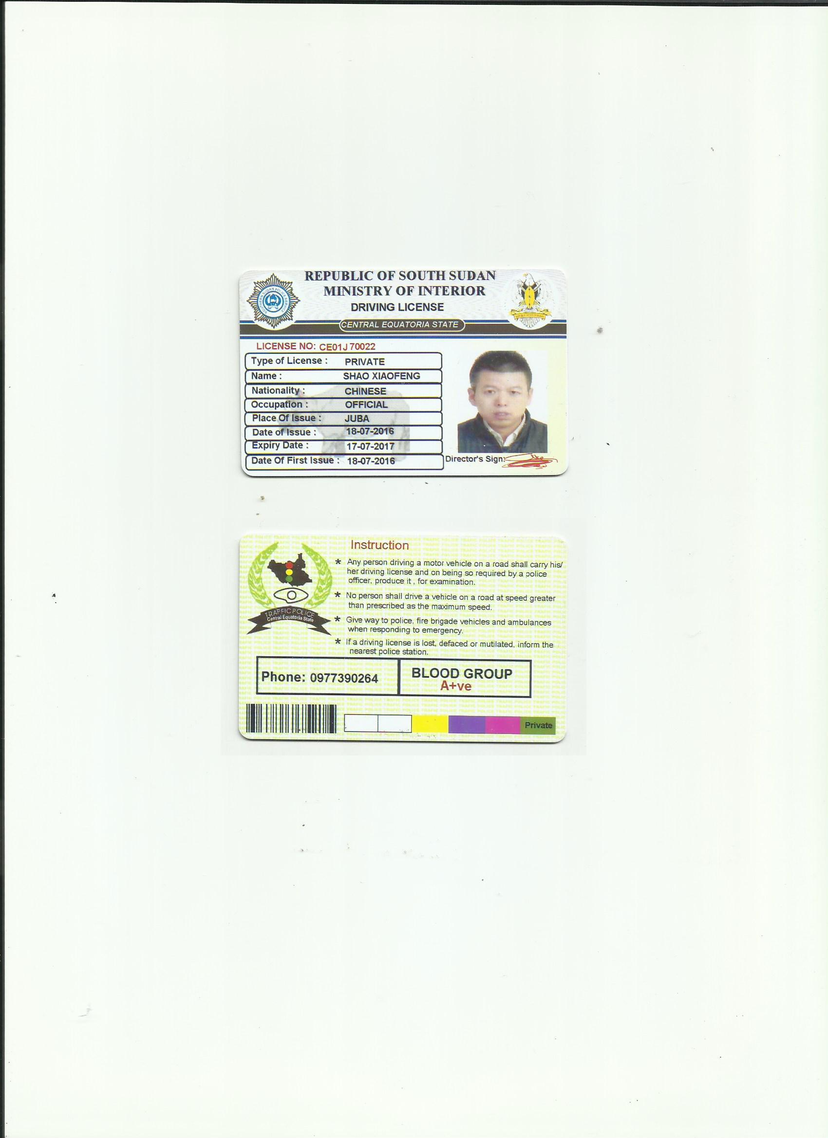 咸陽專業(yè)翻譯-資質(zhì)翻譯公司-南蘇丹駕照翻譯模版