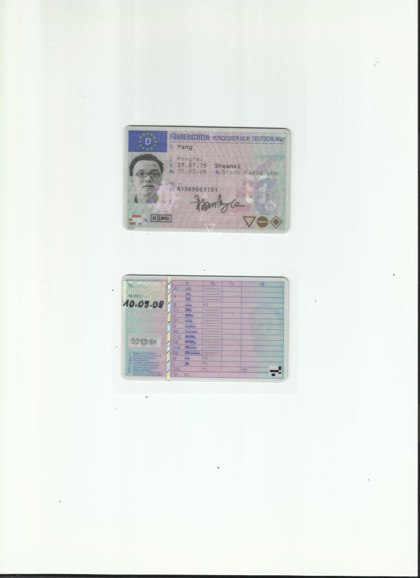 咸陽翻譯 政府指定咸陽翻譯 公安 車管所 德國駕照翻譯模版