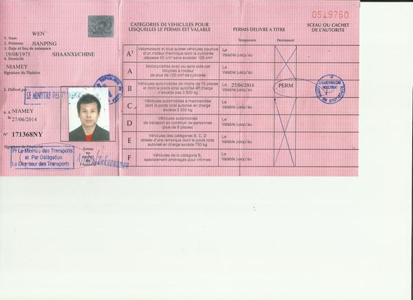 咸陽、西安駕照翻譯-尼日爾駕照翻譯模版-車管所認(rèn)可-蓋章