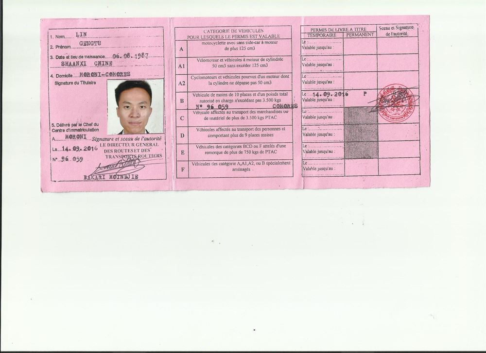 非洲國家-科摩羅駕照翻譯模版-咸陽-西安-車管所認(rèn)可翻譯機(jī)構(gòu)-隨到隨譯