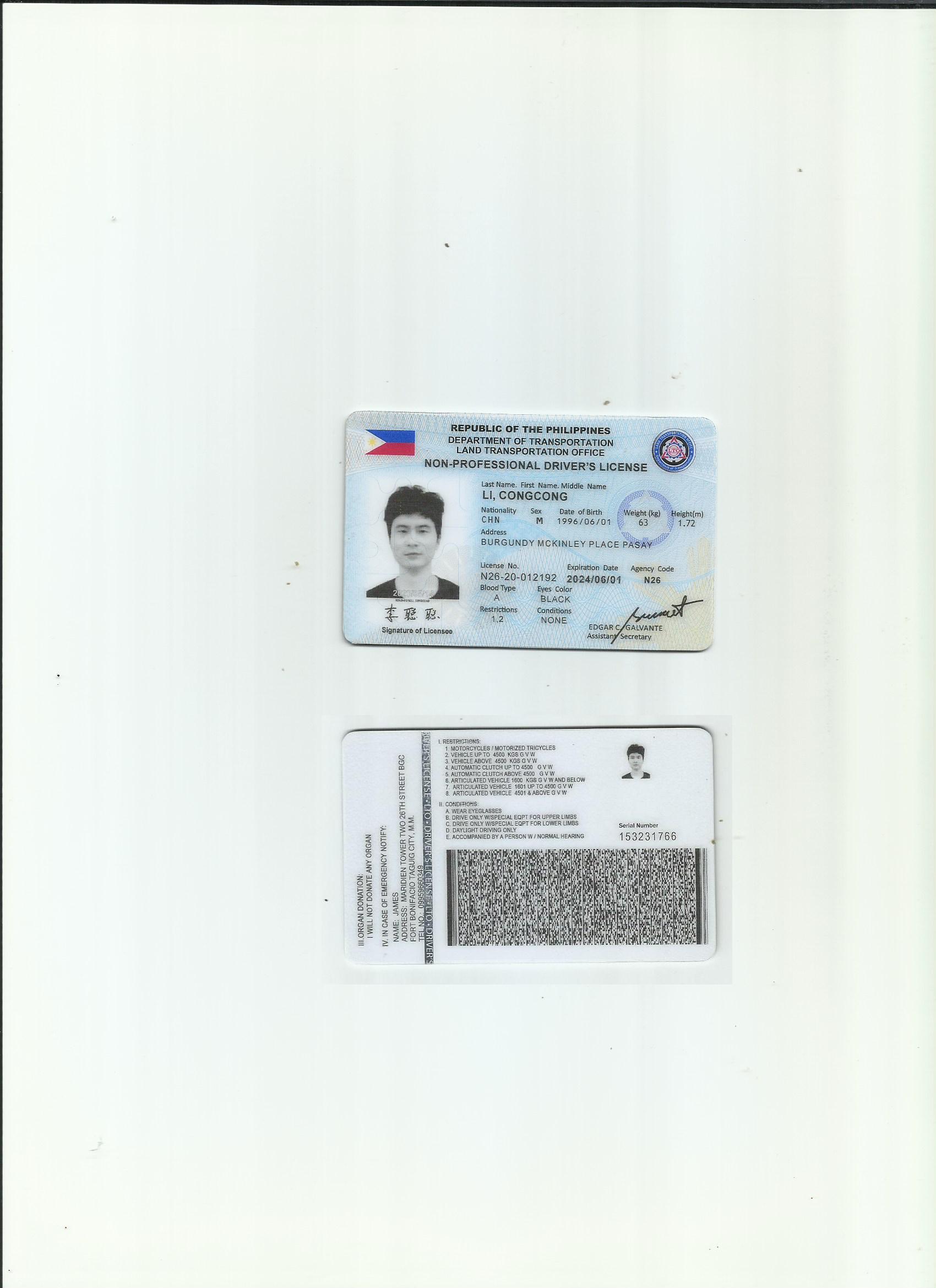 咸陽駕照翻譯公司 咸陽車管所指定翻譯公司 菲律賓駕照翻譯模版