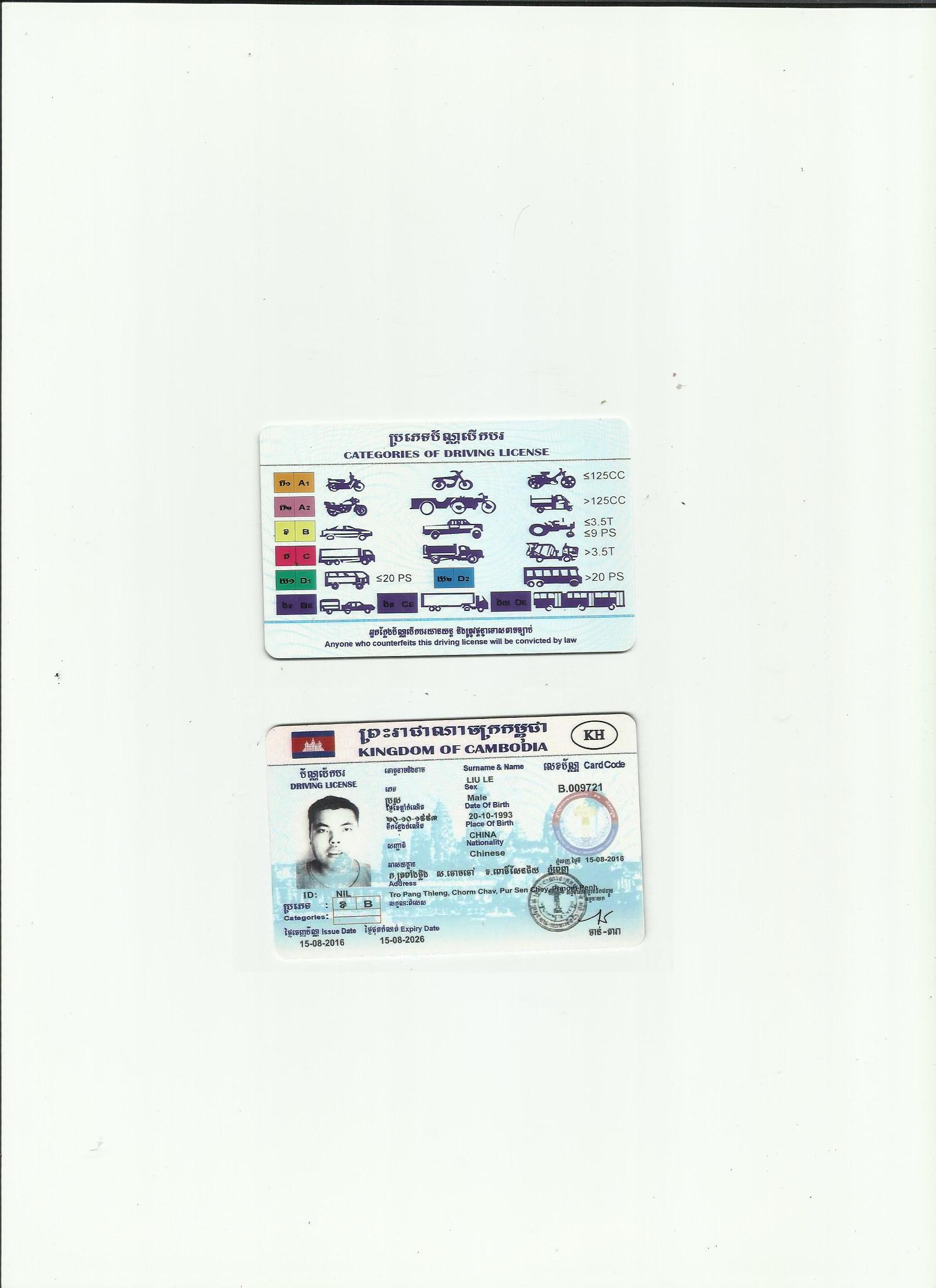 柬埔寨駕照翻譯模版-咸陽市外籍駕照翻譯-咸陽市車管所認(rèn)可翻譯機(jī)構(gòu)