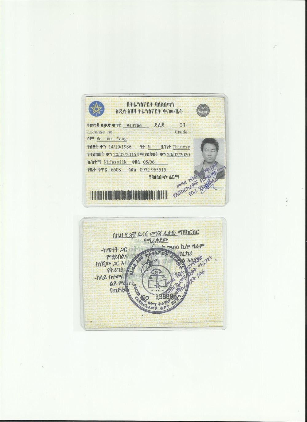 埃塞俄比亞駕照翻譯模版-陜西-西咸新區(qū)-駕照專業(yè)翻譯-車管所認(rèn)可翻譯機(jī)構(gòu)