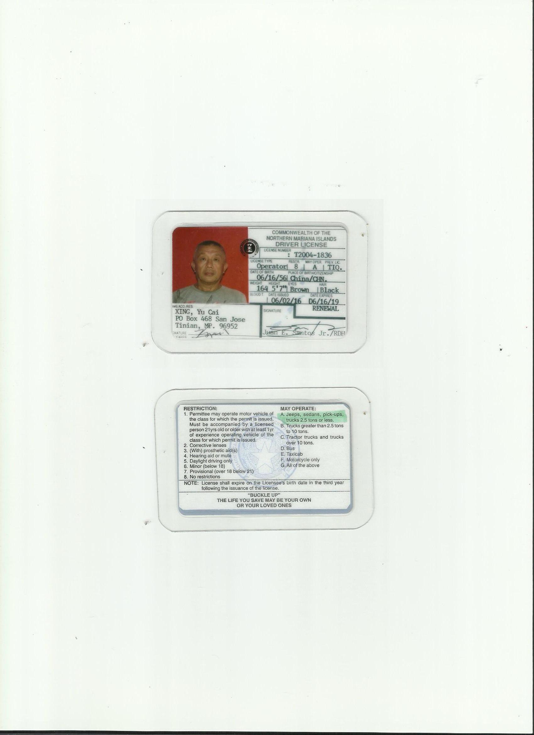 美屬-北馬里亞納群島駕照翻譯模版-咸陽市車管所認可翻譯機構(gòu)-各類證件翻譯!