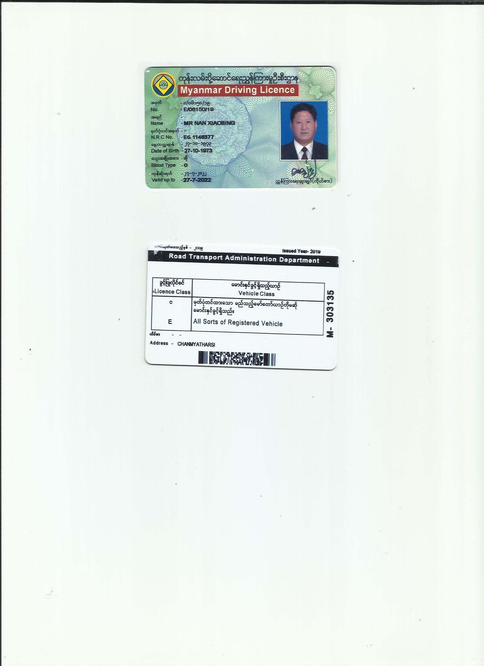 咸陽證件翻譯蓋章 成績單翻譯 戶口薄翻譯 駕照翻譯 緬甸駕照翻譯模版