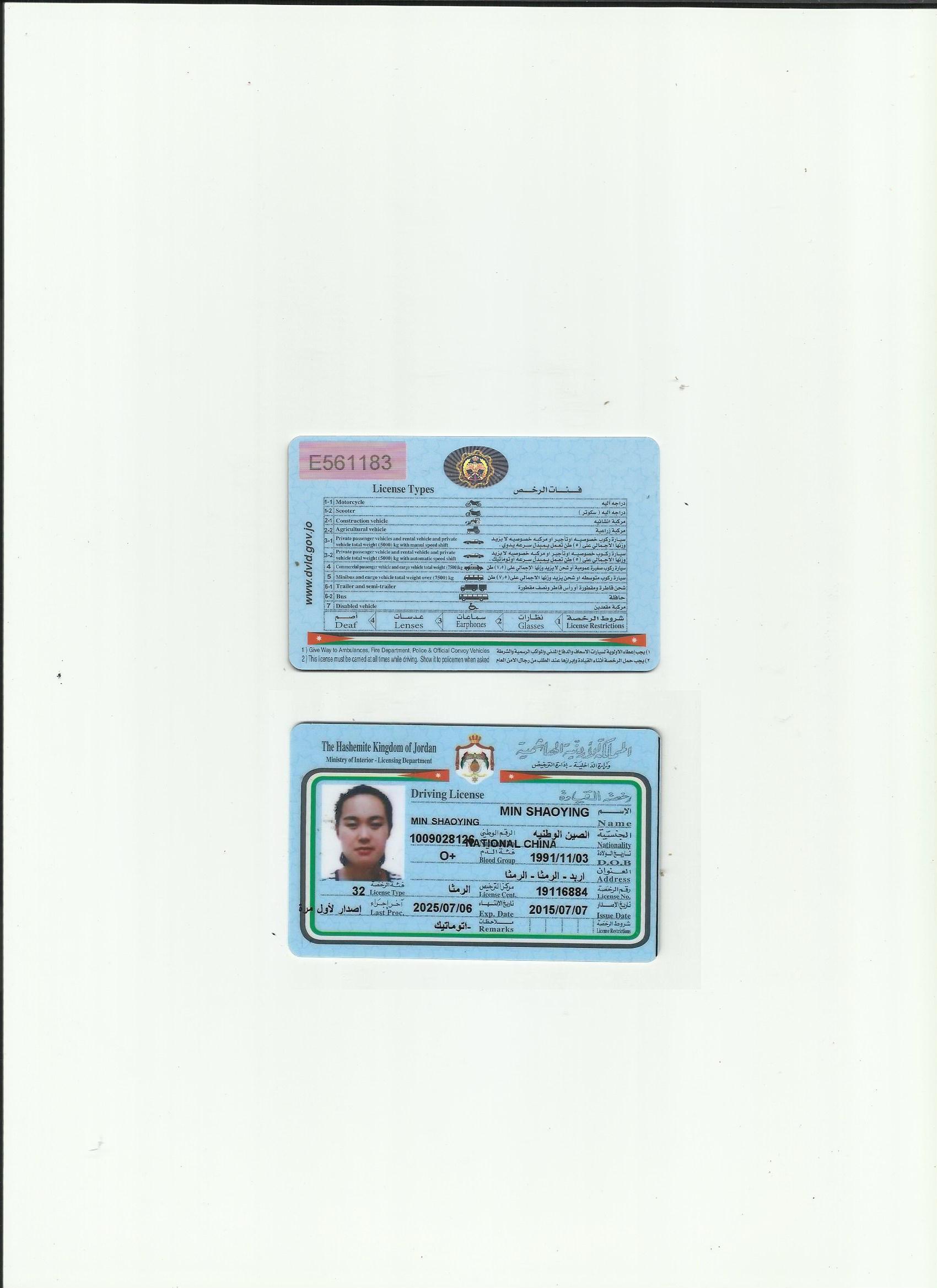 約旦駕照翻譯模版-咸陽市駕照翻譯中心-咸陽市外籍駕照專業(yè)翻譯